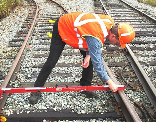 The Accuratus Level/Elevation Rail Gauge tool is designed for high precision in ensuring tracks meet specific maintenance requirements for both width and height.
